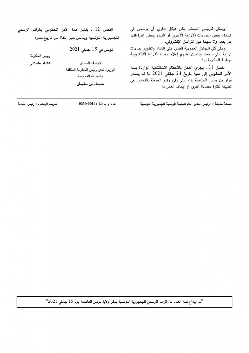 صدر في العدد الأخير للرّائد الرّسمي للجمهورية التّونسية، أمر رئاسي عدد 148 .